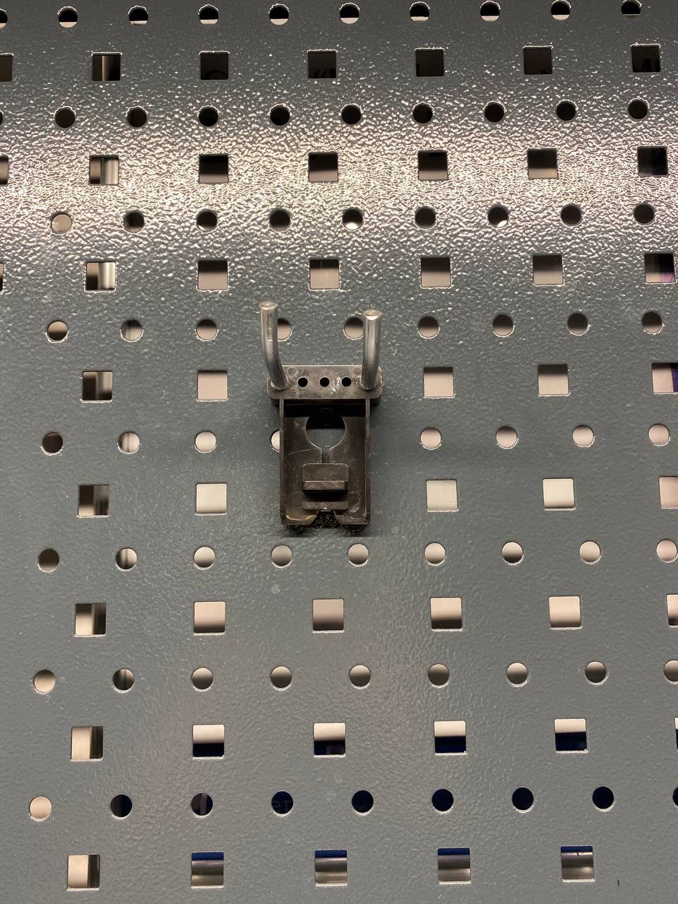Металлические двойные крючки производства ДВК. Отлично подойдут к нашей металлической мебели. Ознакомьтесь с ней на странице нашего магазина, там же Вы найдете другие навески и держатели. Крючки крепятся к перфорированной панели. Надежность крепления обеспечивается пластмассовым держателем с поворотным механизмом.