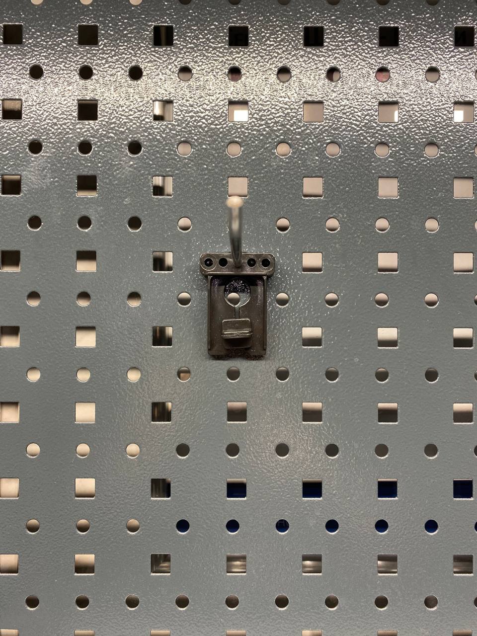 Металлические крючки производства ДВК. Отлично подойдут к нашей металлической мебели. Ознакомьтесь с ней на странице нашего магазина, там же Вы найдете другие навески и держатели. Крючки крепятся к перфорированной панели. Надежность крепления обеспечивается пластмассовым держателем с поворотным механизмом.