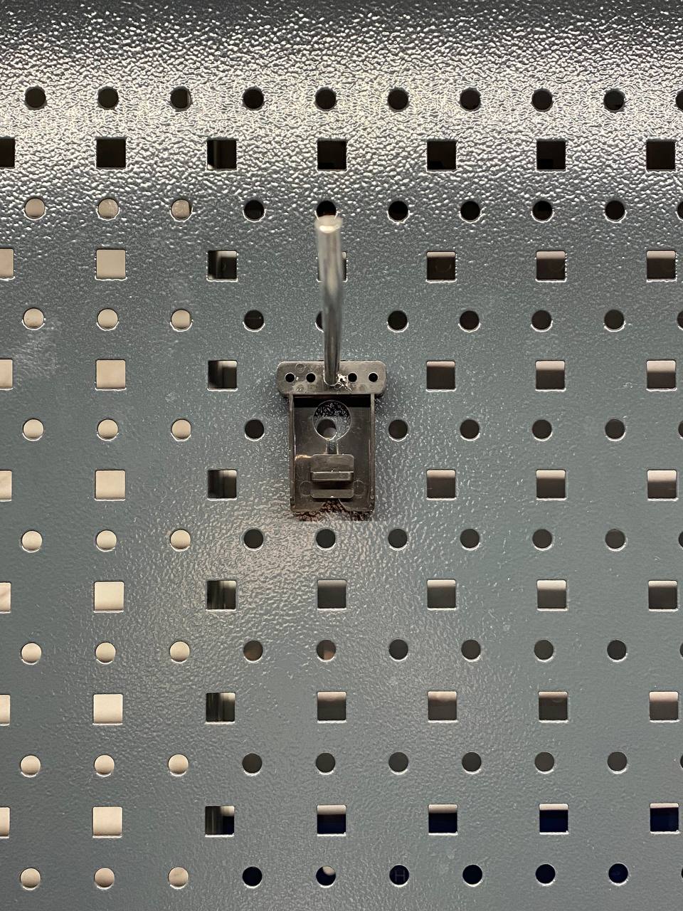 Металлические крючки производства ДВК. Отлично подойдут к нашей металлической мебели. Ознакомьтесь с ней на странице нашего магазина, там же Вы найдете другие навески и держатели. Крючки крепятся к перфорированной панели. Надежность крепления обеспечивается пластмассовым держателем с поворотным механизмом.