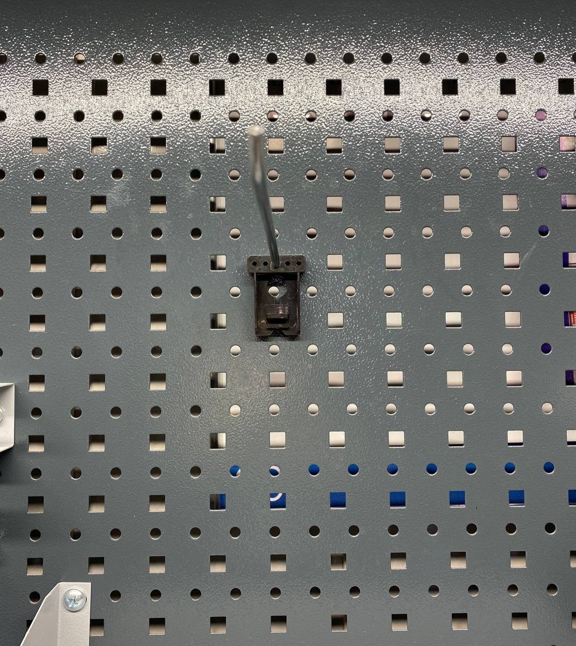 Металлические крючки производства ДВК. Отлично подойдут к нашей металлической мебели. Ознакомьтесь с ней на странице нашего магазина, там же Вы найдете другие навески и держатели. Крючки крепятся к перфорированной панели. Надежность крепления обеспечивается пластмассовым держателем с поворотным механизмом.
