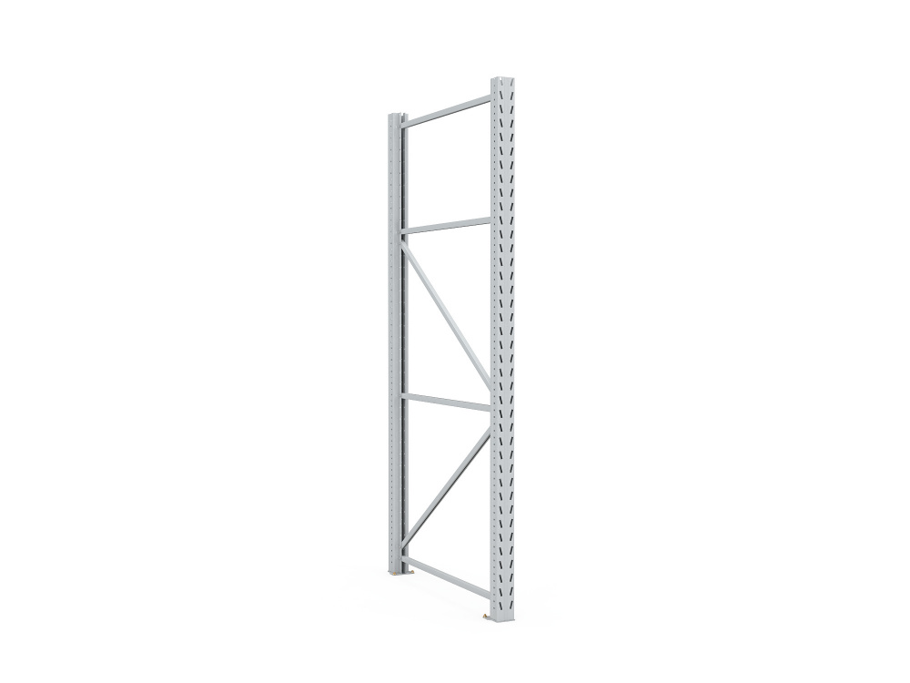 - Рама стеллажа состоит из двух стоек, комплектов диагональных и горизонтальных связей, подпятников (для анкерного крепления к полу) и крепежа