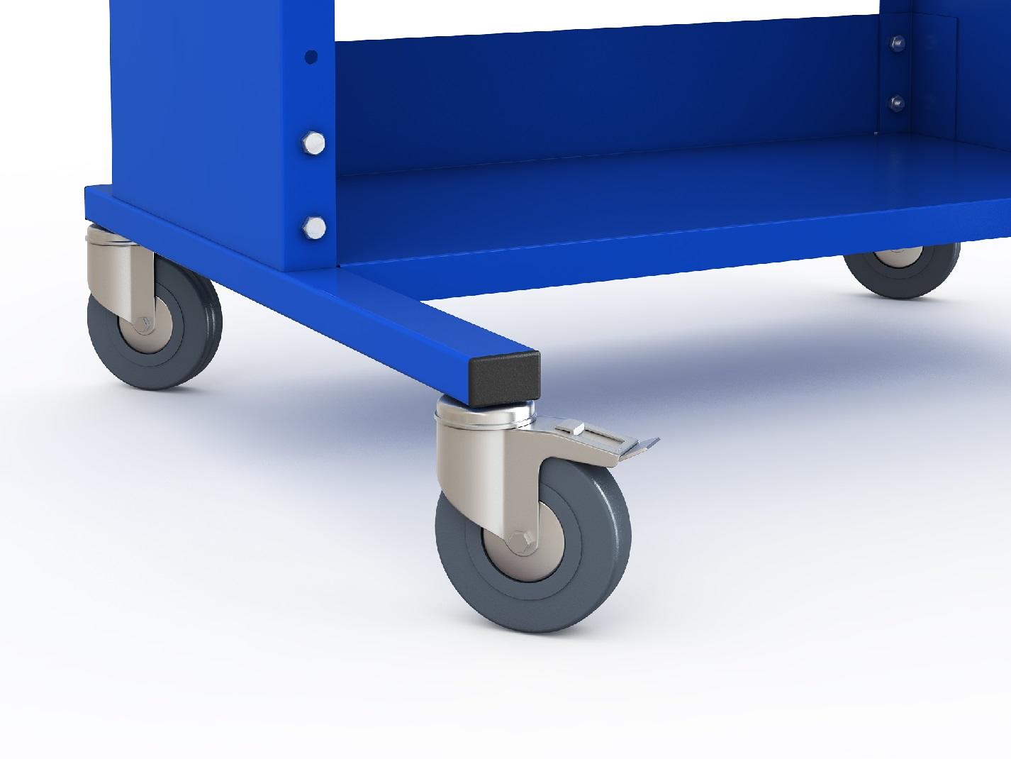 - Основание может комплектоваться винтовыми регулируемыми опорами, служащими для компенсации неровностей пола или комплектом колес d=100 мм из литой резины серого цвета (2 - поворотных с тормозом, 2 - поворотных) для удобного перемещения