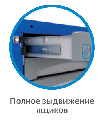 - Полное выдвижение ящиков для легкого доступа к инструменту